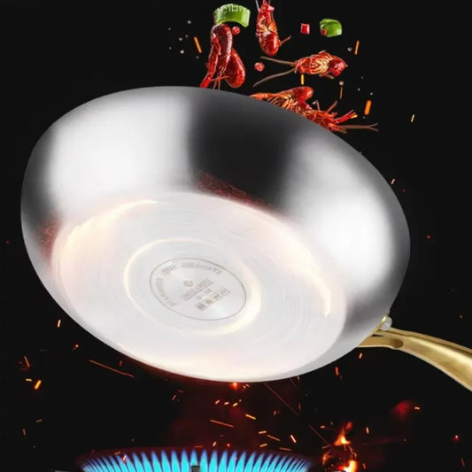 RoyalSteel 316 Stainless Steel Frying Pan with Gold Handle